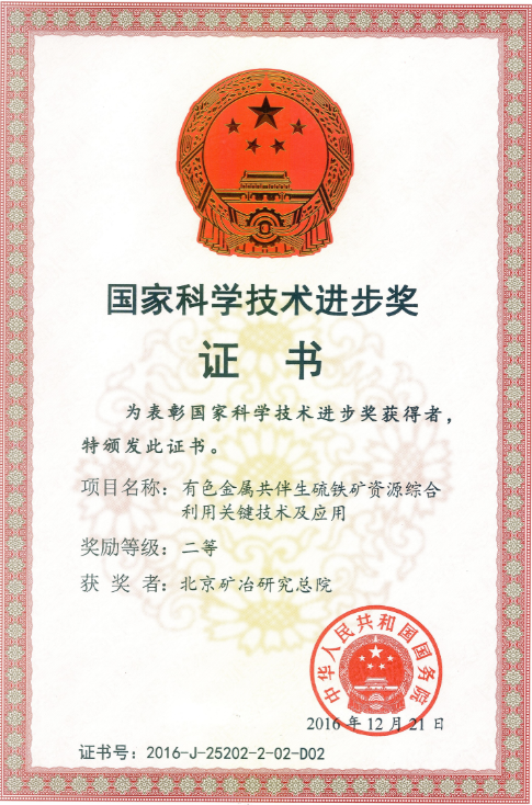 | 3 | 2016 | 国家级 | 国家科技进步奖 | 2 | 国务院 | 有色金属共伴生硫铁矿资源综合利用关键技术及应用 |
