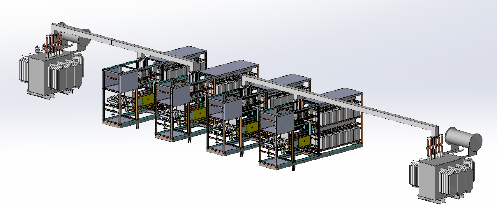 图1 4×1000kW工频串联谐振逆变电源设备布局图