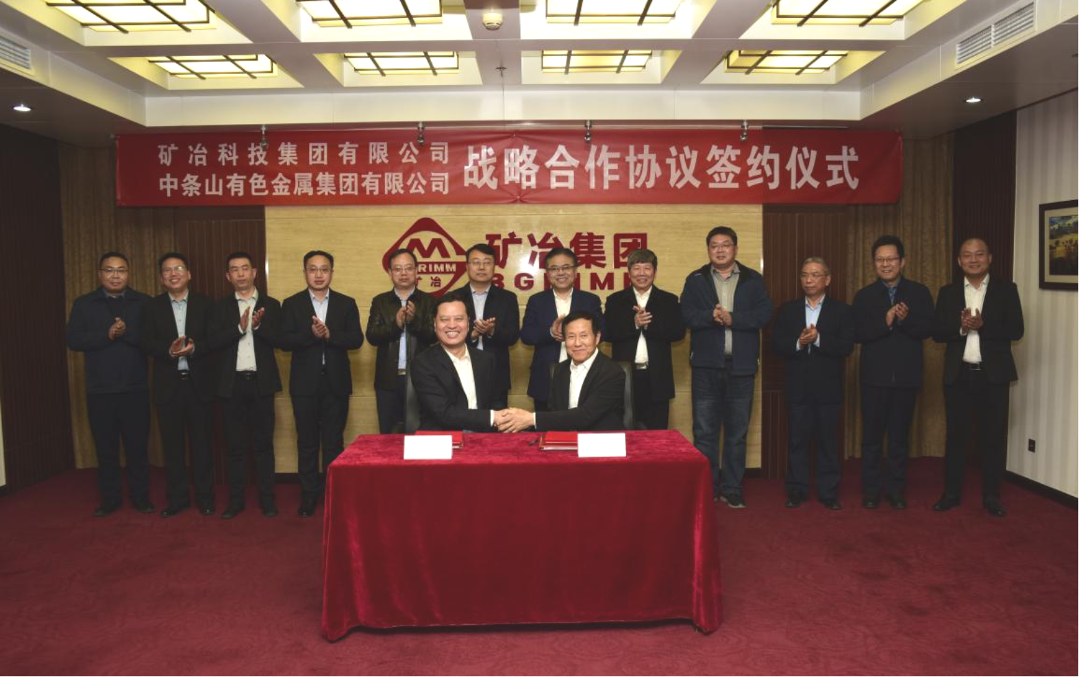 3月27日,官方网站党委副书记、总经理周洲在集团研发中心接待中条山集团、北方铜业党委书记、董事长魏迎辉一行,双方就深入开展合作交流座谈,并签署战略合作协议。官方网站副总经理战凯与北方铜业党委副书记、副董事长、总经理姜卫东代表双方签署战略合作协议。